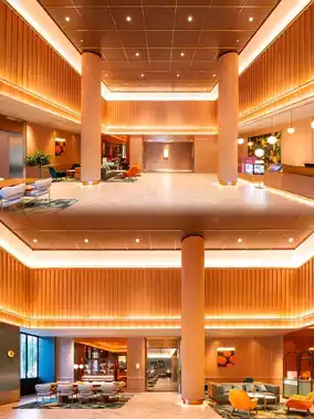 Upon check-in, I received complimentary fruit, and there were oranges available at the entrance, along with refreshing fruit tea. The thoughtful touches were much appreciated. The smart robot even delivers takeout to your room, which is incredibly convenient.