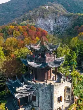 It has the feeling of a Jiangnan water town and the spectacular and unique karst landform. The buildings are scattered among the towering forests, and there is a variety of scenery at every step from the foot of the mountain to the top.