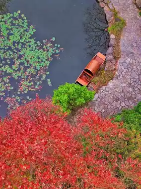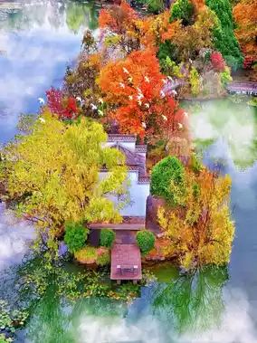 The colorful autumn scenery reflected on the lake looks like a Jiangnan ink painting.