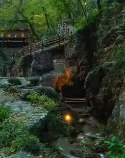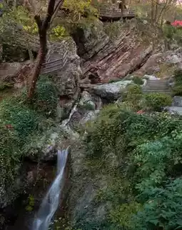 The fall colors are in full swing, and you can experience the fun of hiking. There are small bridges and flowing water along the way, with a view at every step. The mountains are full of red and yellow maple leaves, with a great sense of layering. The watchtower on the top of the mountain is the best place to watch the sunset. Jiubao Hot Spring