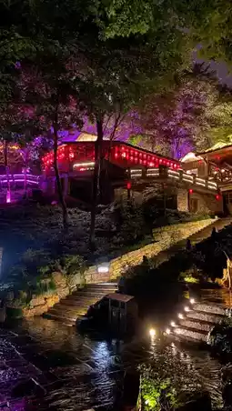 🌌 After dark, enjoy a stunning light show. Recommended to stay at the scenic area's guesthouse "Xiansu," where you can open the window to a starry river
