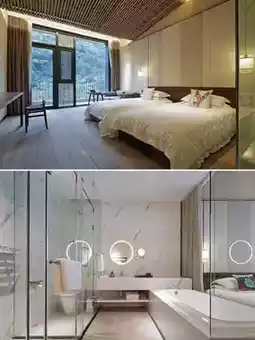 Open the curtains and you'll see lush green mountains and hear the gentle chirping of birds in the bamboo forest.
