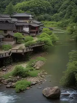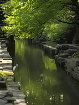 📌 Shishe Village: "Stone steps + ancient trees" by the stream (looks like an ink painting in the morning mist)
