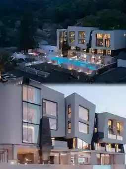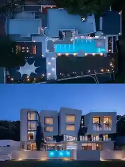 Pure white minimalist style with geometric lines 🔲. The spiral staircase and infinity pool are popular photo spots 📸.
