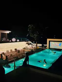 Dive into the crystal-clear pool 💦, recline on a rattan chair,