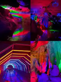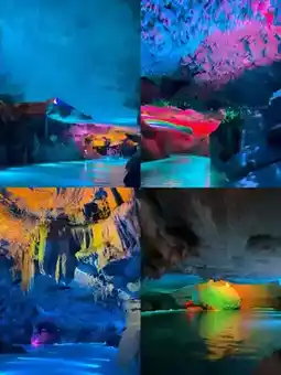 - **Stalactite Wonderland**: Stalagmites and stone curtains of various shapes, illuminated by colorful lights, resemble an "Underwater Dragon Palace" (e.g., "Penglai Fairy Island," "Sea-Fixing Needle").