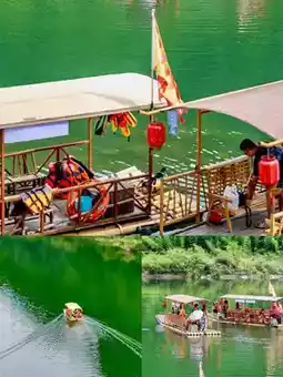Tianmu Creek is known as "a stream with eighteen rapids, each higher than the last" 🌊, making it the perfect spot for bamboo rafting. Set off in the morning and embark on a relaxing rafting adventure 🌞. Board a rustic bamboo raft and drift leisurely downstream, winding through gorges and bends, with moments of thrilling rapids and splashing waves 💦. Along the way, enjoy activities like "Cormorant Fishing Performances" 🦅, "Treasure Hunting in the Water" 💎, and "Pearl Beach Water Play," ensuring endless fun 🥳.
