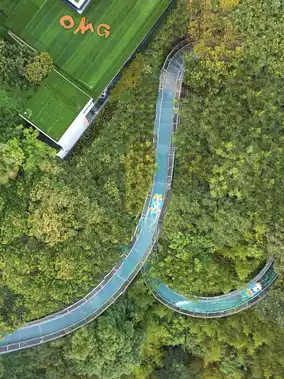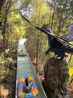 Exciting glass water slides! Wearing waterproof clothing will keep you dry after a long ride. Then, kayak down!