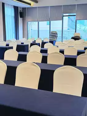 ✦ Meeting Spaces: The 180-person conference room features movable screens for flexible space division - modern minimalist for business meetings, transforming into an elegant tea ceremony venue with tea sets and floral arrangements.