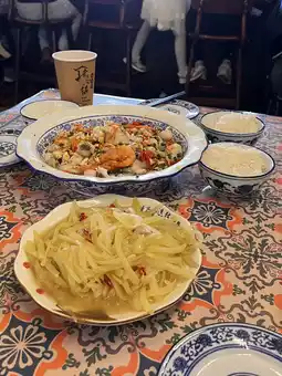 After check-in, we wandered through the ancient town, and honestly, the scenery looked like a painting! 🖼️ I grabbed a smoked plum tea—super refreshing—and we had lunch at the popular MoMoDeJia. The meal was only 158 RMB with unlimited rice refills!