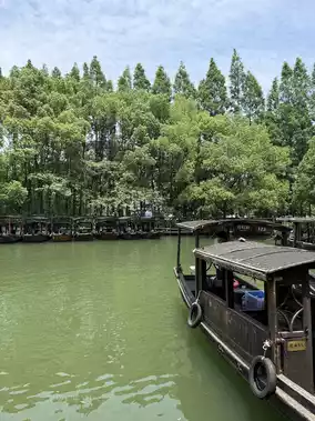 If you're visiting Shanghai or Hangzhou, you must make a trip to Wuzhen. It's about 1 hour and 50 minutes by car from Shanghai, so it's best to leave early in the morning around 7-8 AM to avoid traffic and have more time to explore. Our group left at 10 AM, which led to some traffic congestion. If you get car sick, it might be a bit tiring. Luckily, we had a very helpful driver who bought tickets for Tây Sách for us at 150 RMB per person and boat tickets at 50 RMB per person (the boat fits 8 people). Alternatively, you can walk, but taking the boat is highly recommended!