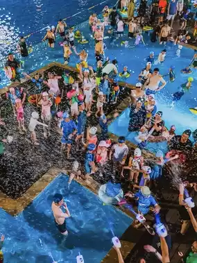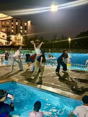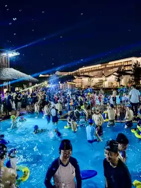 โ๏ธ Pool Party (The night's atmosphere is explosive! Lights ๐ชฉ + music ๐ต + splashes ๐, both adults and kids are instantly ignited ๐ฅ)