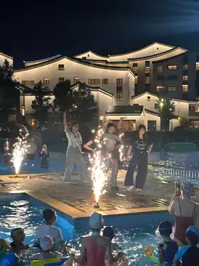 📸 The rice-field pool glows at dusk—perfect for photos. After 7:30 PM, the pool party goes wild! Snap colorful balloons and splashing water for pure joy.