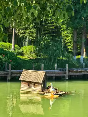 With towering treehouses, vast lotus ponds, colorful mini trains, leisurely carousels, and waddling geese... this is a fairytale-like wonderland!