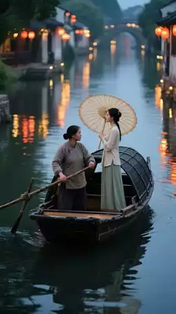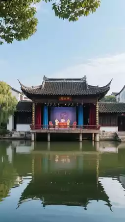 - Water stage: Kunqu opera sounds rise, lantern shadows are dreamy
