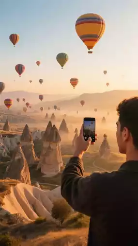 ✅ Uçhisar Castle: climb to the top for panoramic shots, with hot air balloons as a breathtaking backdrop!