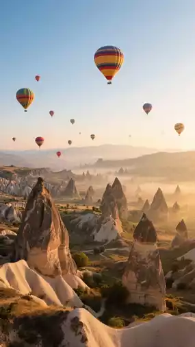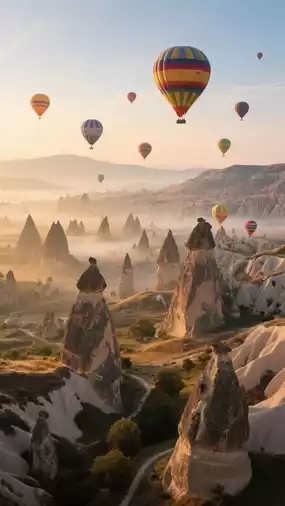 There’s no lunar desolation here, only morning light ignited by hot air balloons and wind sculptures carved over millions of years.