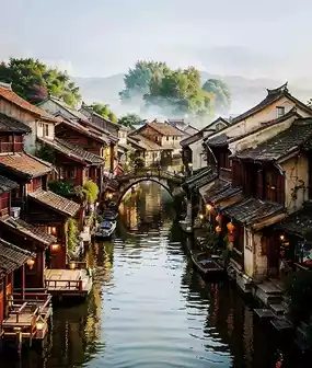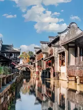 The beauty of Wuzhen lies in the unmanned rowing boats under Jingxing Bridge at 7 a.m., in the reflection of the White Lotus Pagoda in the water when the lights twinkle at night, and in the dripping sound of rain falling on the white walls and black tiles. It preserves the complete water town landscape and is a perfect fusion of traditional and modern art.