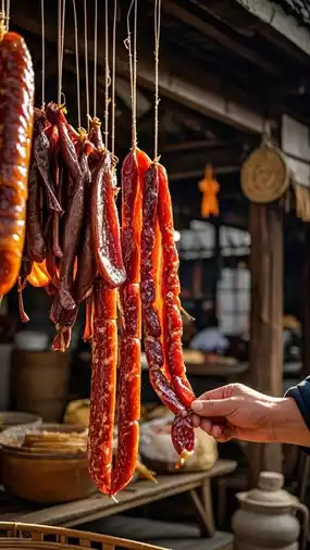 Anchang is most charming in the twelfth lunar month. Sausages, soy sauce ducks, and dried fish hang under the eaves along the street, glistening with oil in the winter sun. These preserved flavors are not performances for tourists but survival wisdom passed down through generations of Anchang people. In the workshop of the intangible cultural heritage inheritor of "Anchang Preserved Flavors," I witnessed the traditional production process: selecting local lean pork, marinating it with ancient recipe seasonings, then slowly smoking it over pinewood fire. The owner handed me a freshly sliced sausage; the amber-colored fat marbling was as beautiful as marble, and the rich aroma upon tasting evoked the festive flavors of my childhood grandmother’s home.