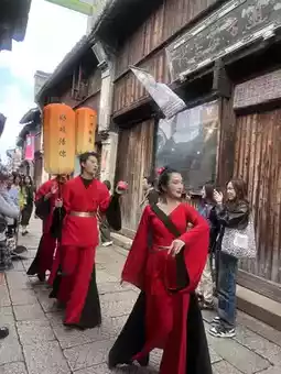 The whole Wuzhen is a theatre! Performances happen anytime on streets, bridges, and boats🚣♀️