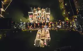 Steampunk-style mechanical devices gleam with metallic light, complementing the light and shadow installations drifting over the river. Stilt walkers hand out balloons, around the corner you encounter the fragmented light and shadow of puppet shows, and even the walls hide surprise installations. Every few steps you’re immersed in art, unable to move your feet.