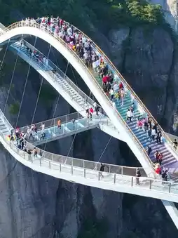 • The glass floor on the lower level of the bridge makes you feel like you're walking in mid-air, perfect for adventurers.