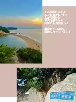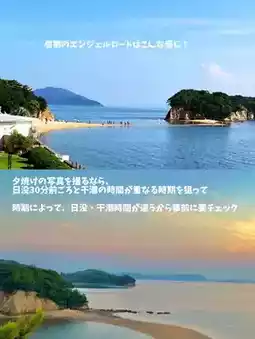 📍For those going to Angel Road in Shodoshima✨I will explain the best photo spots❗️☑︎If you want to take a photo of Angel Road from above, go to Promise Hill Observatory✨You can climb the stairs to get there! ☑︎There is a bell at Promise Hill Observatory, which is also a good photo spot📷☑︎Taking a photo while crossing Angel Road gives you a different atmosphere than taking a photo from above✨☑︎The sandy road only appears during low tide, so be sure to check in advance❗️☑︎If you want to take a photo of Angel Road at sunset, the time of low tide and sunset differs depending on the season, so it is best to aim for the time when low tide and 30 minutes before sunset overlap◎ (30 minutes before sunset is the best time to take a beautiful sunset) Use this as a reference and go to Angel Road✨