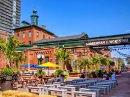 The **Distillery District** is a former Toronto distillery transformed into a cultural and arts district.