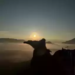 Experience the awe-inspiring sunrise at Mount Bromo. As the first light of dawn kisses the rugged peaks, a sense of wonder fills the air.