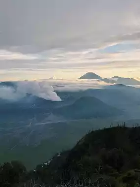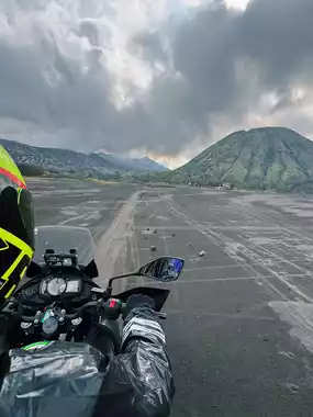 After exploring the base, we recharged with a fresh coconut 🥥 and continued to a viewpoint where we saw all three peaks: Bromo, Semeru (which was actually erupting!), and Batok. The view was absolutely breathtaking 🤯🌄
