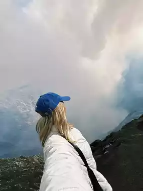 Then, the volcano revealed itself — powerful, smoking, and truly alive. The sulfur fumes are intense, so be cautious near the crater! ⚠️🌋