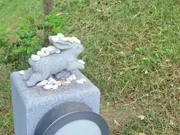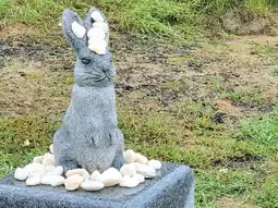 There are cute rabbit statues everywhere.