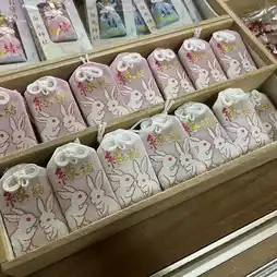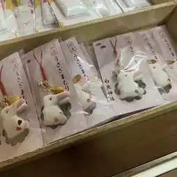 The charms, votive plaques, and even the postboxes are rabbit-patterned lol