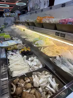 • The buffet bar is extensive, featuring a variety of seasonal vegetables, hotpot ingredients, noodles, and specialties like braised pork rice, braised pork rice, curry rice, ice cream, and drinks. The ingredients are diverse and fresh. • A wide selection of drinks and ice cream, including Thai mango soft serve ice cream, are available, perfect for enjoying with hot pot.