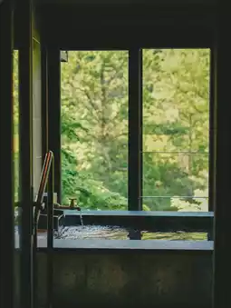 The spacious 120 square meter room has a hot spring where you can enjoy the view of the mountain stream, and is decorated with a mural made of real moss, making it an extremely luxurious space...