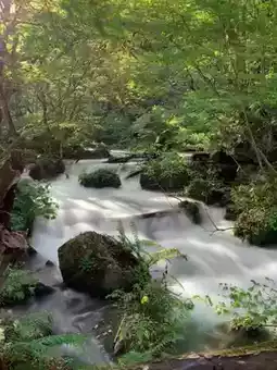 The Samidare stream, which is a representative stream of Oirase Stream, is named after the fact that one stream splits into three, and you can take photos like a slow shutter even with an iPhone 📸
