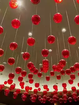 ② If you go further into the hotel, you will find the large fireplace "River God" by Taro Okamoto in the lobby near the stream base
