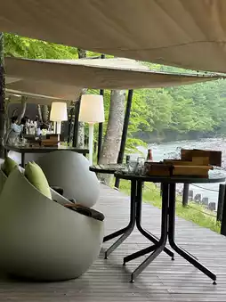 Upon arrival at the hotel, the first thing that catches your eye is a building full of modern design, but it does not feel out of place with the surrounding natural landscape. The hotel's lobby is built with a lot of wood and glass. Sunlight shines into the room through the floor-to-ceiling windows, and the view extends to the stream and forest outside the window. The whole space is surrounded by nature, making people relax instantly.