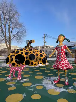 Although it's called an art museum, it actually integrates urban landscaping. While walking, I discovered a Yayoi Kusama piece installed in the plaza. From the introduction, I learned that due to the declining population in Towada, the city began collaborating with artists in 2008 to transform Towada into a city of art.