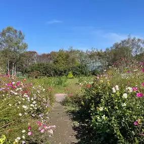 There is also a beautiful flower field, and when we visited, cosmos were in bloom. The autumn decorations were also very cute.