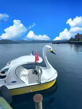 On Lake Toya, there is a revolutionary new type of swan boat called the "Motorized Swan," which does not require rowing. No driver's license is required and it is easy to operate. It is easy to enjoy, so please give it a try when you are sightseeing!