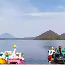 📝 Lake Toya offers an experience where you can enjoy the beauty of nature by riding a duck boat. Departing from the pier, you can enjoy the scenery of Mt. Yotei and Mt. Usu during a 50-minute cruise, and have a special time with your family or friends.