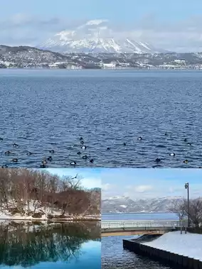 Lake Toya is a lake formed by volcanic eruptions, which does not freeze in winter and is famous for its volcanic hot springs. 😍💖