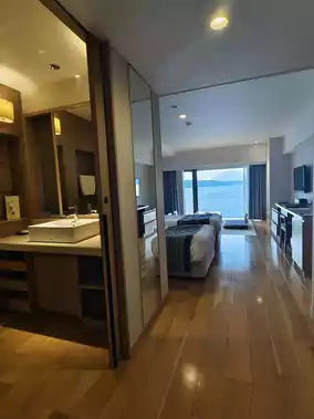 The hotel is located on the shores of Lake Toya. From the lobby and the rooms (high-rise standard twin rooms), you can see Lake Toya and Mount Yotei. You can even watch the fireworks at night.
