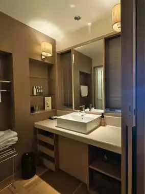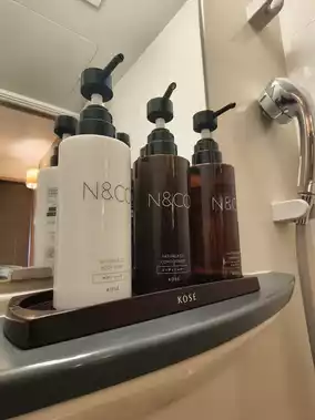 Basic toiletries, including shampoo, conditioner, toothpaste, toothbrush, and a comb, are provided in the room. Makeup remover, bubble cleanser, and moisturizer are also available.