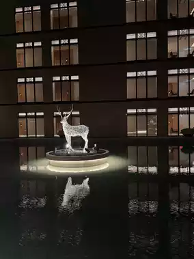 The lobby is grand and features a large fireplace, with the wonderful scent of wood fire. It must feel warm during winter. There's also a small cabin where events like concerts are held, which is a delightful touch.