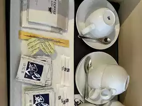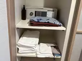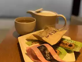 Snacks are provided with the room, and tea bags, ice buckets, tea cups 🍵 and other supplies are stored in the cabinet space.