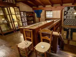 The Toyama Municipal Folk Craft Village (富山市民俗民芸村, Toyama-shi Minzoku Mingei Mura) is a collection of multiple small museums in the wooded hills west of downtown Toyama City. The buildings themselves are often as interesting as the exhibits, with two being gassho-zukuri farmhouses relocated from more rural areas of the city and similar to those found in nearby Gokayama. Next to the folk village stands Chokeiji Temple with its 500 rakan statues.