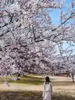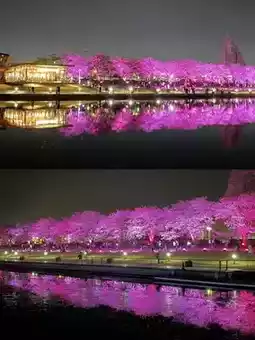 During the cherry blossom season, many cherry blossoms bloom in the park, and the cherry blossom trees are lit up at night, creating a romantic and wonderful atmosphere💕
