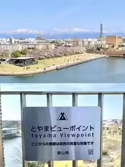 At the top of the observation deck, there is a sign that says Toyama Viewpoint!! And the bridge lit up at night has a lovely atmosphere too~😊🤍